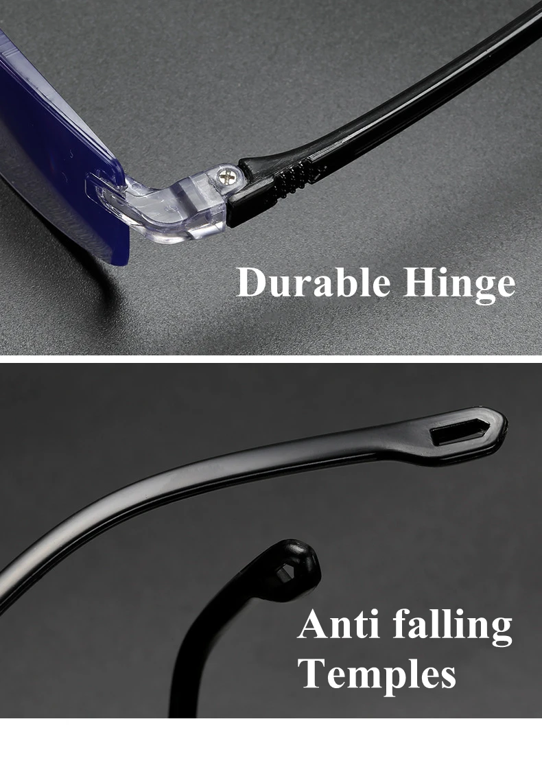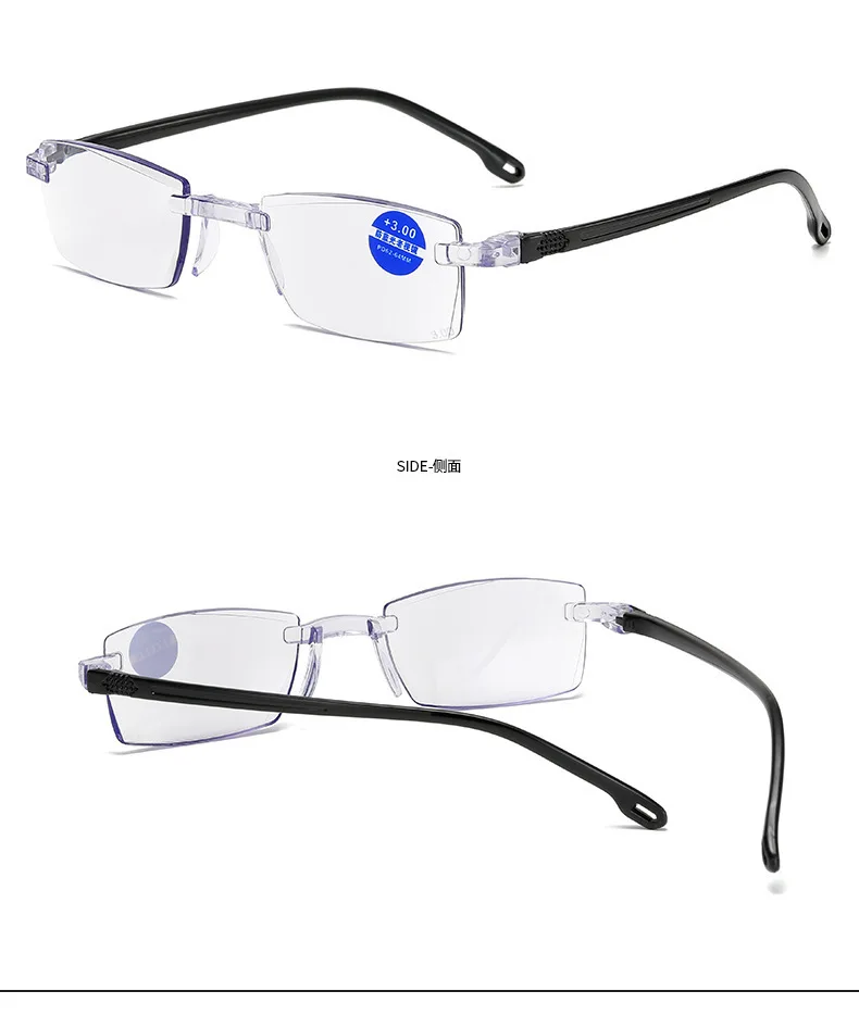 Custom logo Durable Flexible New HD Black Frameless Plain Unisex Fashion Anti Blue Light Reading Glasses for Men Women