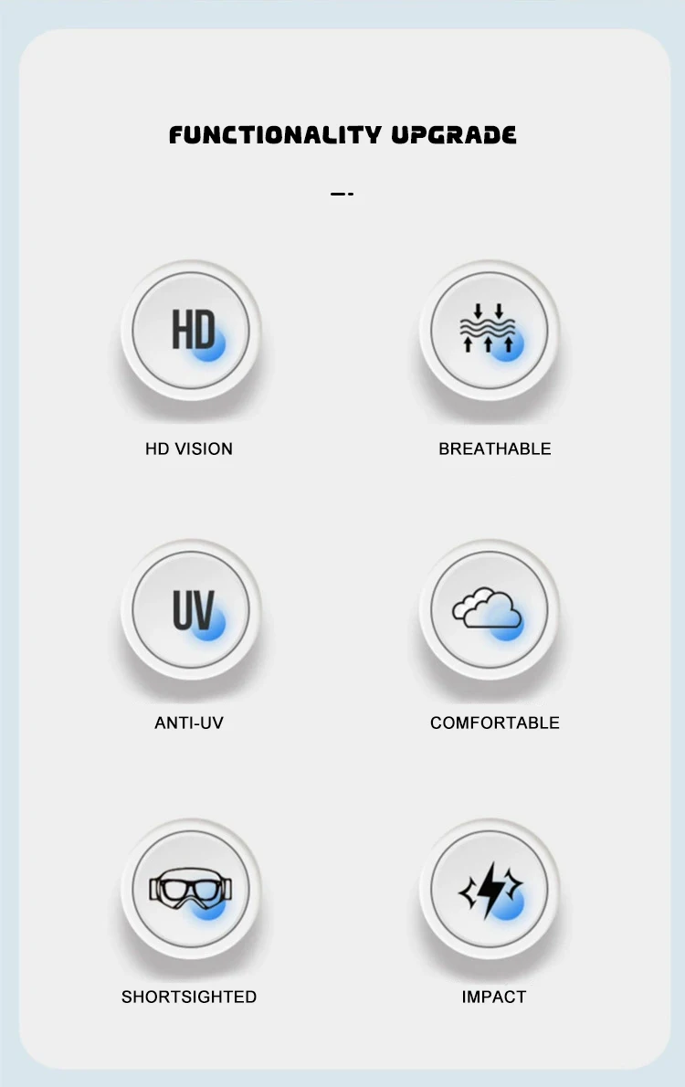 Function: Anti-fog, Anti-scratch, Impact-resistant, Anti-splash,droplet, flying debris ,dustproof, windproofs