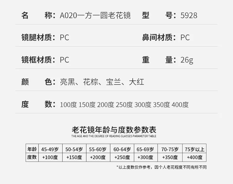 Product Name: Square round presbyopia glasses